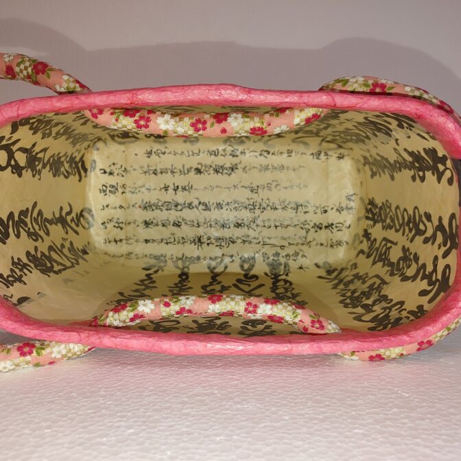 かごバック No.40 一閑張り カゴバック 薄桃色地 片輪車に四季草花 牡丹 縁ピンク 通常価格 17000 円 (税込) 購入はこちら ※商品価格以外に別途送料がかかります。 全国一律 1,500円(四国、沖縄を除く)四国沖縄の方は質問欄よりお問い合わせください。 説明 ●B5サイズがピッタリ収まりますので使い勝手の良い大きさです! ●内側、外側共に防水処理をしていますので多少の雨でも平気です! ●とても鮮やかな柄なのであえて柿渋は塗っておりません! ●サイズ(約)縦23.5cm幅30.5cm奥15cm(取っ手を含まず) ●とても可愛い女性らしい作品です (・∀・)!! 関連商品 No.39 一閑張り カゴバック 金地 御… 30000 円 (税込) No.37 一閑張り カゴバック 茶系ゴー… 60000 円 (税込) sold out No.38 一閑張り カゴバック 紺地 幾… 50000 円 (税込) No.32 一閑張り カゴバック 浴衣 黒… 16500 円 (税込) この商品が紹介された特集 かごバッグ 一閑張り コメントは受け付けていません。
